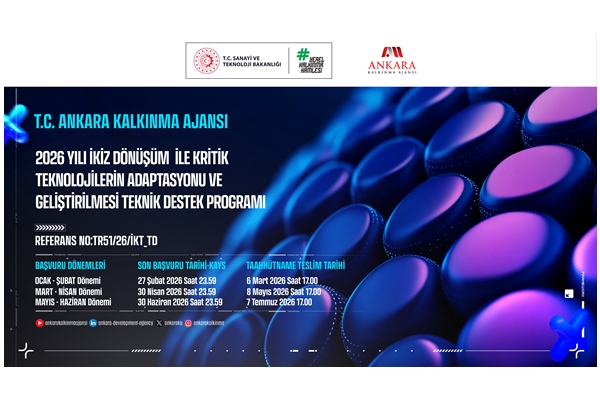 Ankara Kalkınma Ajansı İkiz Dönüşüm İle Kritik Teknolojilerin Adaptasyonu ve Geliştirilmesi Teknik Destek Programı’nın 2026 yılı için başvuruları başladı.