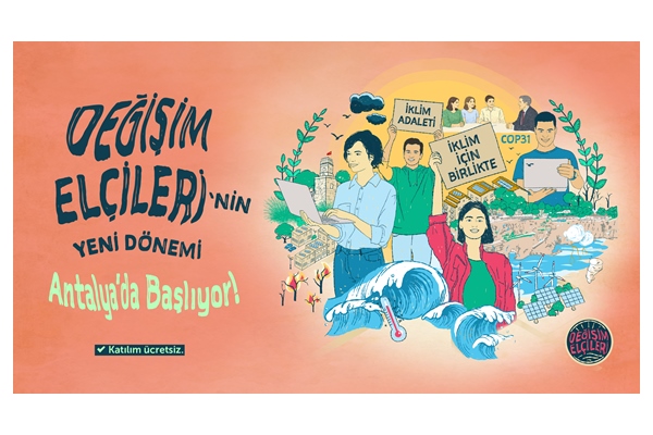 Türkiye’nin farklı şehirlerinde iklim kriziyle mücadeleyi güçlendirmek ve iklim adaleti taleplerini görünür kılmak amacıyla Türetim Ekonomisi Derneği tarafından yürütülen Değişim Elçileri Programı, 2026 yılında Antalya’da hayata geçiyor. COP31’in 2026’da Antalya’da düzenlenecek olması, gençler için iklim politikalarına doğrudan katılım ve taleplerini ulusal ve uluslararası düzeyde dile getirme açısından önemli bir fırsat sunuyor.