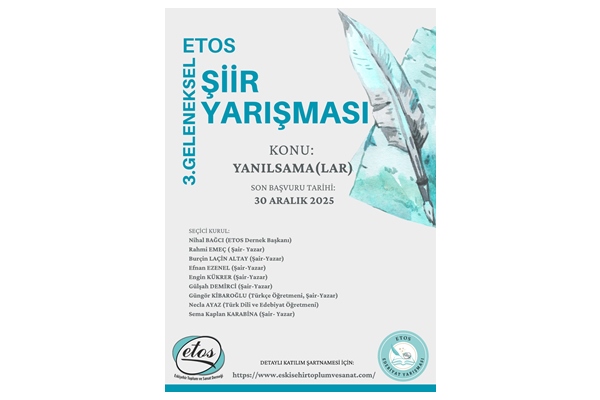 Eskişehir Toplum ve Sanat Derneği’nin (ETOS), 3. Geleneksel Şiir Yarışması için başvurular açıldı.