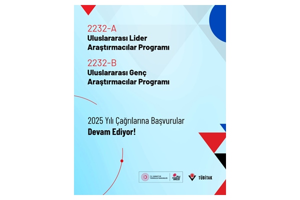 Türkiye Bilimsel ve Teknolojik Araştırma Kurumu (TÜBİTAK) 2232-A Uluslararası Lider Araştırmacılar Programı ve 2232-B Uluslararası Genç Araştırmacılar Programı 2025 Yılı Çağrıları için başvurular devam ediyor.